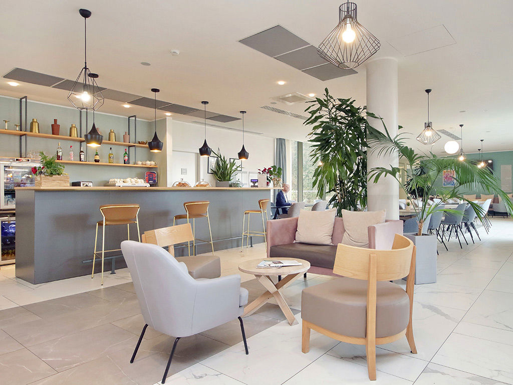 La nostra area Bar, situata nell'accogliente lobby al piano terra, è il luogo ideale per iniziare la giornata.